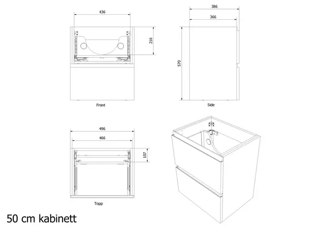 MIE er en moderne møbelserie med mange muligheter. Her kan du selv bygge ditt eget baderomsmøbel ved å velge farge/utførelse på skuffefronter og sidepanel. Ønsker du med tiden møbelet i en annen farge/utførelse, kan du bestille nye fronter og sidepanel, og enkelt bytte dette ut selv. Servantskap har dype skuffer med sidevegger av glass, full uttrekk og svært god oppbevaringsplass. Solide skuffeskinner med selvlukkende funksjon og demping som sørger for at man kjenner kvaliteten. Funksjonelle løsninger som C-utsparring for vannlås, mulighet for stikkontakt i skuff og fingergrip på skuffer. Møblene er sammensatt av komponenter av høyeste kvalitet med enkel og smart montering.