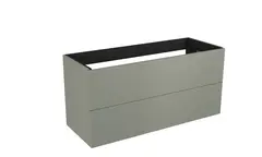 MIE TREND Oliven kommer med slette fronter og valgfrie håndtak. Frontene kan enkelt byttes ut om man på et senere tidspunkt skulle ønske seg en annen farge. Baderomsmøbelet er i størrelse fra 60 centimeter til 180 centimeter, og man kan også bestille høyskap.