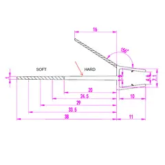 Det er 38mm total høyde, 50% av leppen på subbelisten er myk.